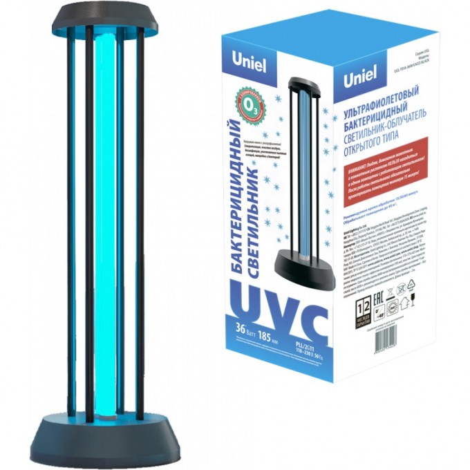 Светильник бактерицидный Uniel серии UGL-T – светильник-облучатель открытого типа, предназначен для стерилизации, очистки воздуха, дезинфекции, уничтожения пылевых клещей, микробов и бактерий. Ультрафиолетовая лампа расположена в устройстве в открытом виде, поэтому данный вид светильника КАТЕГОРИЧЕСКИ ЗАПРЕЩЕНО использовать в присутствии людей и животных. Светильник-облучатель бактерицидный имеет универсальное применение - может использоваться как в домашних, так и в специальных условиях, как для дезинфекции квартир, так и производственных, медицинских и других помещений. Данная модель светильника с озонированием, 185 нм. Светильник мощностью 36Вт, лампа с цоколем 2G11, для замены подойдут любые бактерицидные лампы с аналогичным цоколем. Один светильник обрабатывает помещение площадью до 40 м2.!